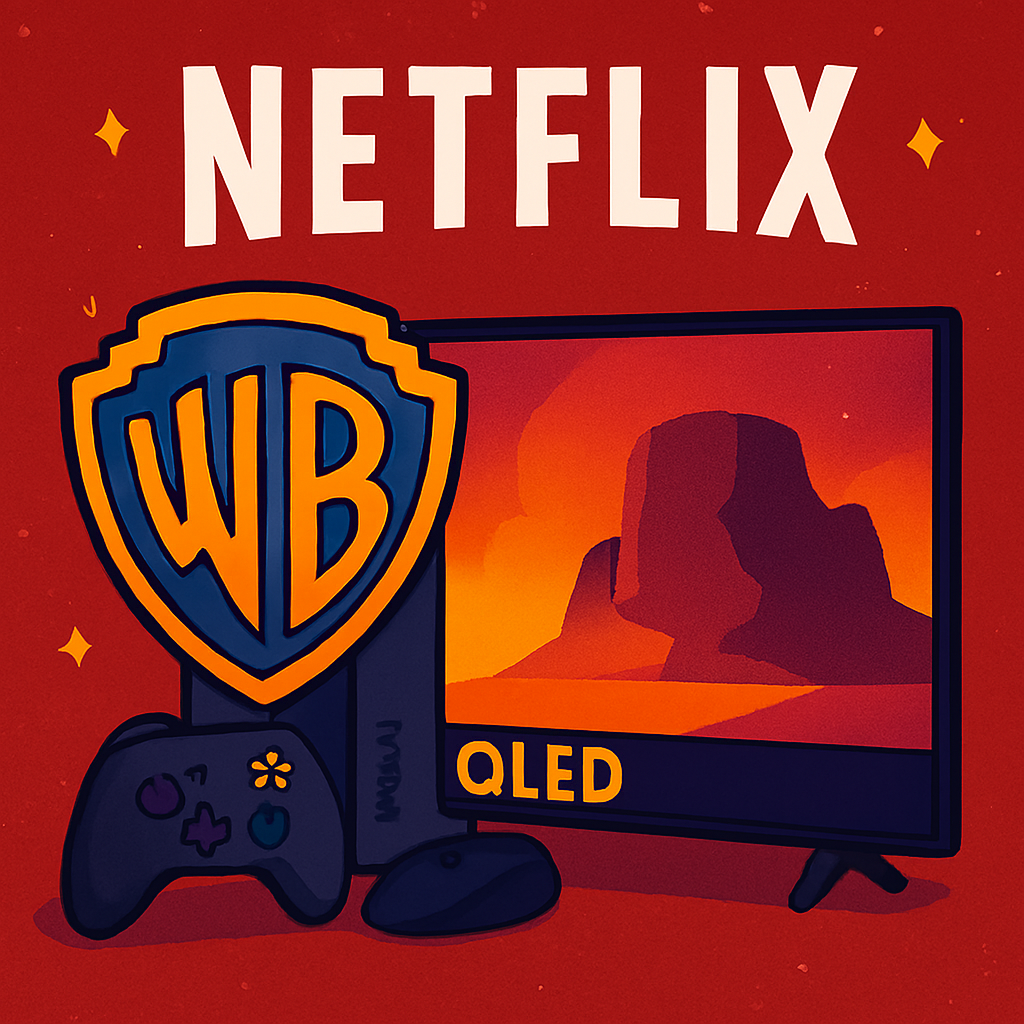 A Netflix comprou a Warner Bros. Discovery por US$ 72 bilhões e agora será dona de estúdios lendários e da HBO Max. É o maior movimento da história do streaming — e você vai querer uma TV à altura para acompanhar essa revolução.